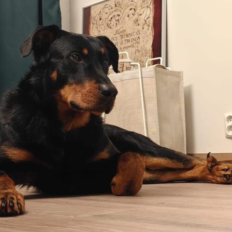 Koiran mukana tulee erilaisia vermeitä, joilla pärjää. Koira asuu kerrostalossa, mutta tottunut olemaan myös ulkona. Omaa erittäin pentumaisen luontee ja on seurallinen. Koira on terve ja kaikki rokotukset kunnossa.
