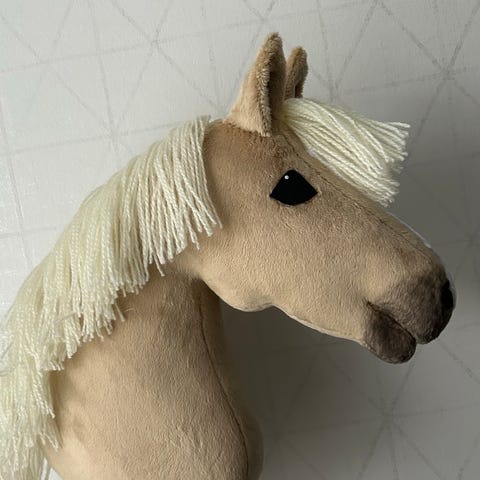 Myynnissä uusi, karvakankaasta valmistettu keppihevonen. Heppa on vähän yli A4-kokoinen. Kepparin mukana tulee ensimmäisessä kuvassa näkyvä pinkki riimu. Myydään täytteillä mutta ilman keppiä. Postikulut lisätään hintaan.