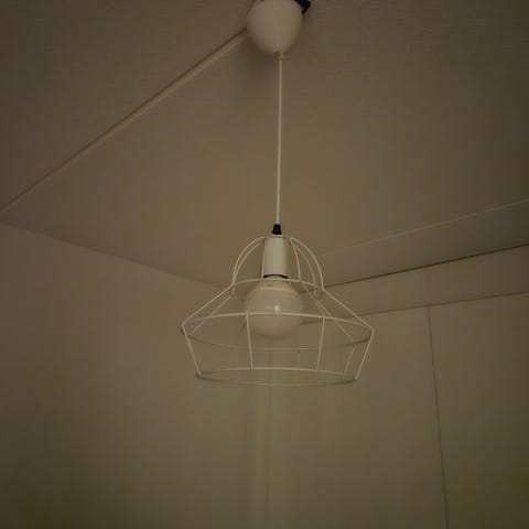 Vuoden katossa ollut, nyt muuton myötä tarpeettomaksi jäänyt valaisin. Siisti ja toimiva, lamppu mukaan.