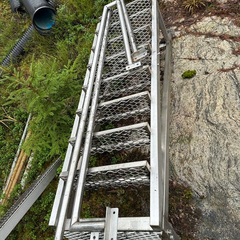 Myydään valmiiksi purettuna 2kpl samalla nousulla ja etenemällä olevia uniikkeja mittatilaus laatu portaita. Kehä/runko todella vahva, valkoista maalattua metallia/ terästä ja askelmat painavaa umpipuuta, sävyä kuvaa mielestäni parhaiten vaaleahko pyökki. Askelmat voi ja tulee käsitellä haluamallaan syvyllä. Vaatii painonsa vuoksi kaksi kantajaa.