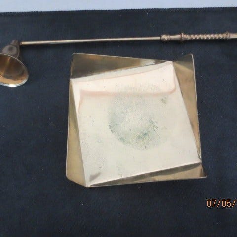 Kiiltävän hopeanvärinen metallinen kynttilänsammutin.