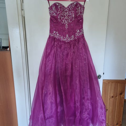Ihana liila glitterinen vanhojentanssimekko. Edestä korsettityylinen ja takana nyörit. Yhdet tanssit tanssittu ja hyvässä kunnossa. Olen 175cm ja tanssin tennareilla. Koko s. Mekkoa saa tulla sovittamaan ylöjärvelle! Voin myös postittaa!