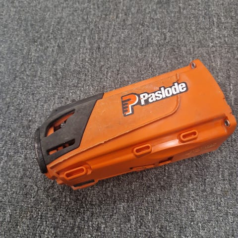Paslode xi sarjaan kaasupullon irroitus painike. Naarmuinen mutta ehjä