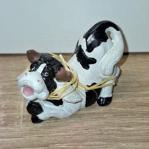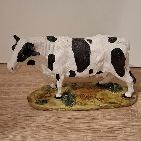 Myydään musta valkoisen lehmä aiheinen patsas.itsellä olnut koristeena hyllyllä