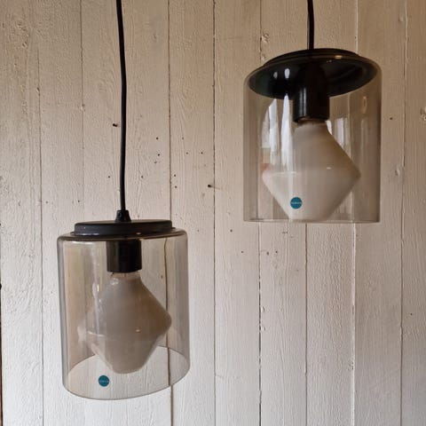 Idman riippuvalaisimet, suunnittelija Tapio Wirkkala. Ehjät, kohtuu siistit ja toimivat. Toki pikkuisen elämän jälkeä ja kulumaa löytyy. Hieman naarmua ym. Yläosan reiän reunat viimeistelemättömät, toisessa aika rouhea. Ei kuitenkaan paikallaan näy. (Ks. Viimeinen kuva)