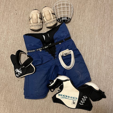 Maskissa KOHO:n etukuori ja ITECHin takasuoja, molemmat alkuperäisiä ja jääkiekkokäyttöön hyväksyttyjä.