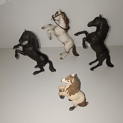 Schleich hevonen ja eläinhahmot lelusetti sisältää valkoisen hevosen, tiikerin ja koiran pienoismallit sekä hevosen varusteet. Lelut on valmistettu kestävästä materiaalista ja ne soveltuvat lasten leikkeihin.