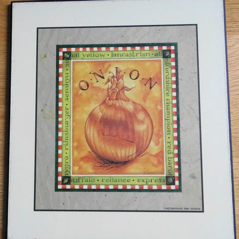 Hyväkuntoinen ja nätti kuva artisokasta. On painettu puiselle levylle. Sopii hyvin koristeeksi vaikka keittiöön tai ruokailutilaan. Koko on noin 22x24cm. Alkuperäinen kunto, eli siisti/hyvä.