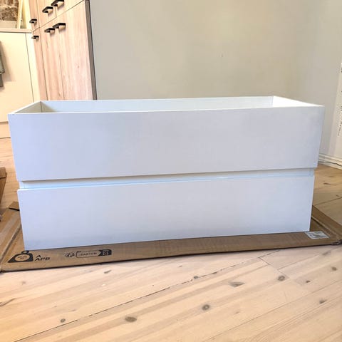 Myydään allaskaappi, allas, peili & hanat rempan tieltä.