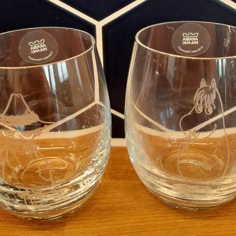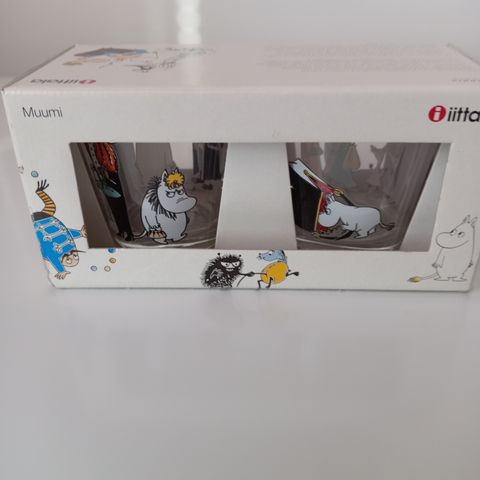 Paketissa olevat KÄYTTÄMÄTTÖMÄT lasit. Nuuskamuikkunen, Pikku Myy, Niiskuneiti ja Muumipeikko. Nouto tai postitus.