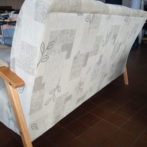 1+1+3 Istuttava sohva kangas Jaguar vaalea väri siisti ja ehjä Hyvä istuttava