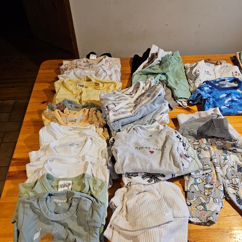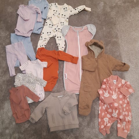 Koko setti 25€, mutta voi kysellä myös yksittäisistä hintaa. Kaikki vaatteet 1-4€ luokkaa, paitsi: