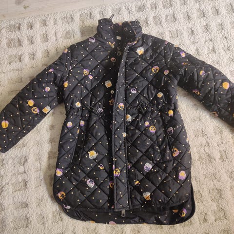 Oikein nätti ja siistikuntoinen pidemmänmallinen tikkitakki, jossa molemminpuolin helmassa vetoketjut.