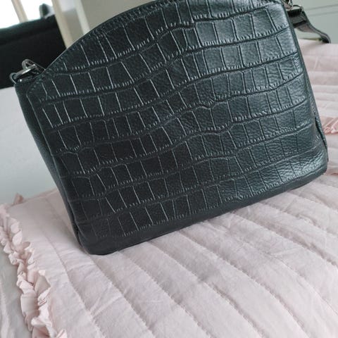 Myydään uusi tummahkon punainen tilava kiiltonahka olkalaukku. Sisällä avo-ja vetoketjullinen taskut. Etu-ja takaosassa vetoketjulliset taskut. Molemmilla sivuilla avotaskut. Vetoketju kiinnitys. Sisäosa kangasta.