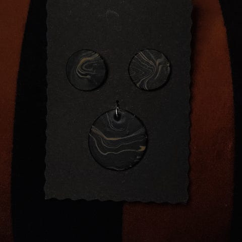 Itse valmistetut pinkki-musta-valkoiset marmori kuvioiset korvakorut. Täydelliset joululahjana.
