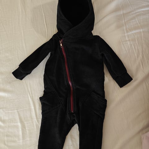 Gugguun vaaleansininen collegehaalari sinisellä vetoketjulla. Merkille tyypillisesti pientä kokoa, kokomerkintä 68cm, käyttäisin 62 kokoisena.