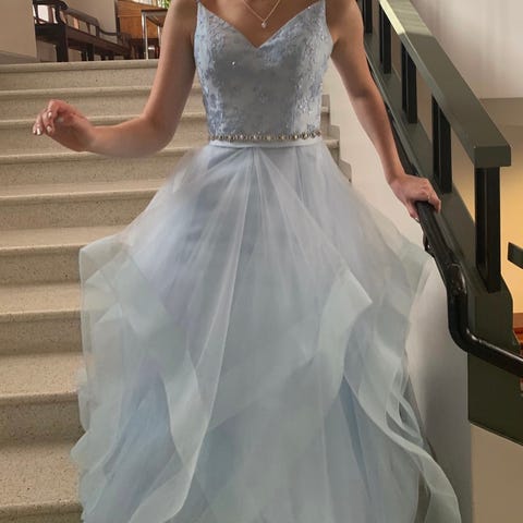 Diva Fashionin vanhojentanssimekko + vannehame. Mekko ja vannehame on käytön jälkeen pesty, joten hajuttomia ja tahrattomia molemmat.