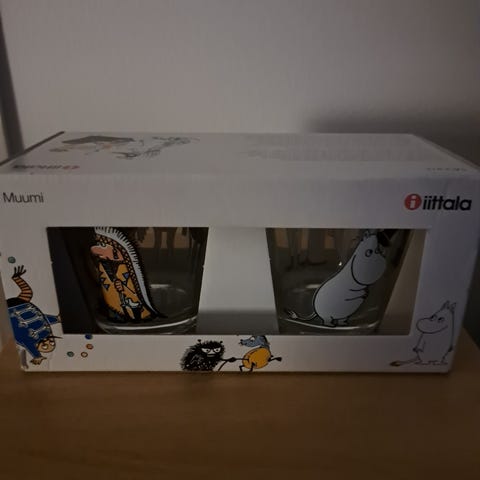 Iittala Muumi Juomalasit piknik&viidakkoelämää 21cl(2011-2012)käyttämätömät ja virheettömät säilytetty omassa laatikossaan 30€+posti