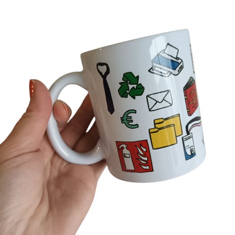 muki - termos - termosmuki - kuppi - kahvikuppi - tee - teekuppi - teksti - printti - graafinen - grafiikka - musta - valkoinen - mustavalkoinen - työ - työelämä - työpaikka
