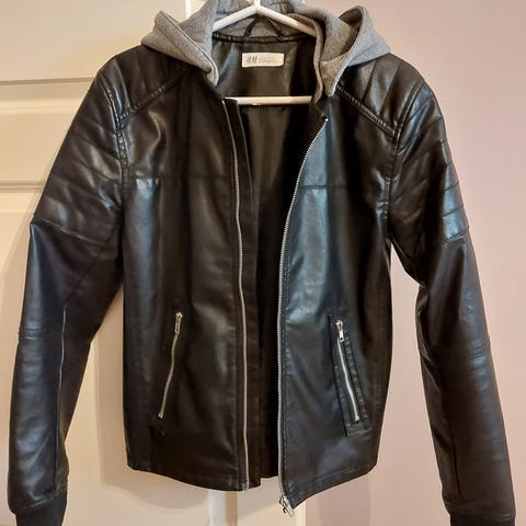 H&M lasten keinonahkatakki, koko 164, musta väri.