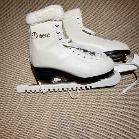 Valkoiset luistimet, koko 37. Sopivat muun luistelun harrastamiseen. Sabrina merkkiset. Pientä pinta naarmua, muuten siistit.