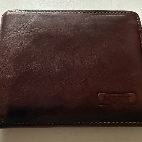 ruskea nahkainen. Hinta 2 euroa.