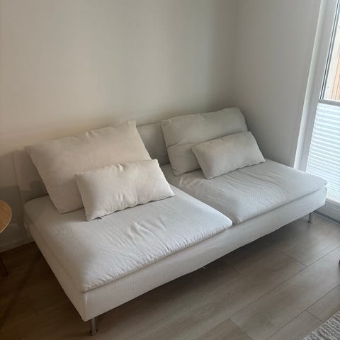 Hyvässä kunnossa vuoden ikäinen IKEA Söderhamn 3;n istuttava sohva.