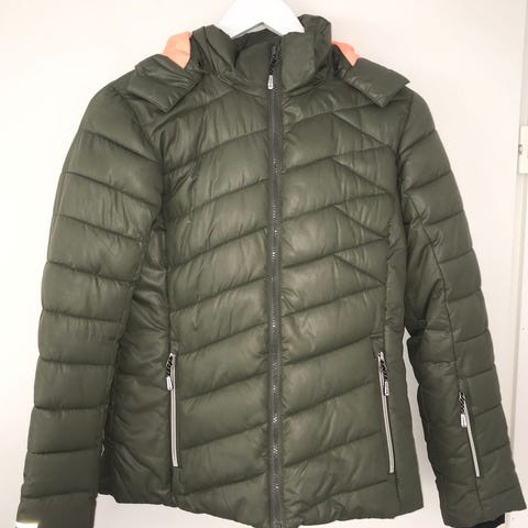 Myydään hyväkuntoinen nuorten Bugatti-merkkinen laskettelu/lautailutakki. Väriltään khaki/musta, hupussa valkoinen karvavuori. Koko 164 cm. Lumilukko, povi-ja hihatasku sekä edessä kolme taskua.