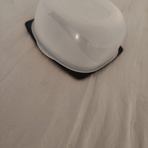 Hyväkuntoiset Tupperwaren jäädykevuoka ja juustokupu.