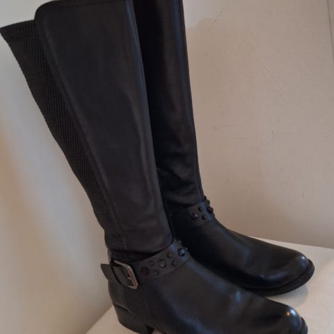 Caprice Saappaat mustaa nahkaa, koko 39. Saappaissa on korkea varsi ja vetoketju sivulla. Koron korkeus on noin 7 cm. Sopivat käytettäväksi erilaisissa sääolosuhteissa ja asukokonaisuuksissa.