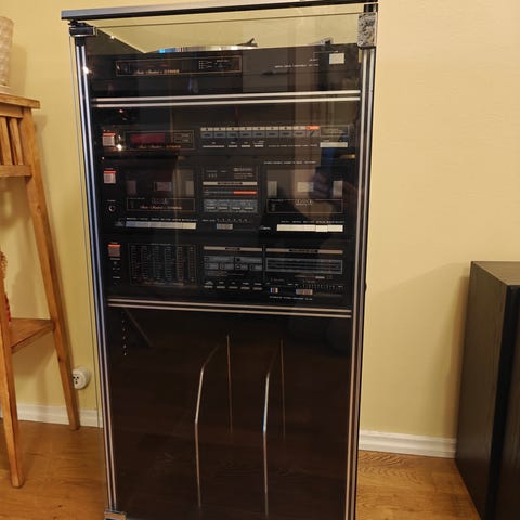 Vahvistimessa on ilmeisesti jotain vikaa. Levysoitin, tupla C-kasetti (äänitys mahdollisuus), radio, kuuden CD:n kasetti, sekä musta räkki.