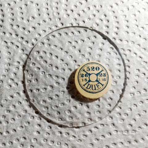 Taskukellon lasi 570 mm , vanha , käyttämätön