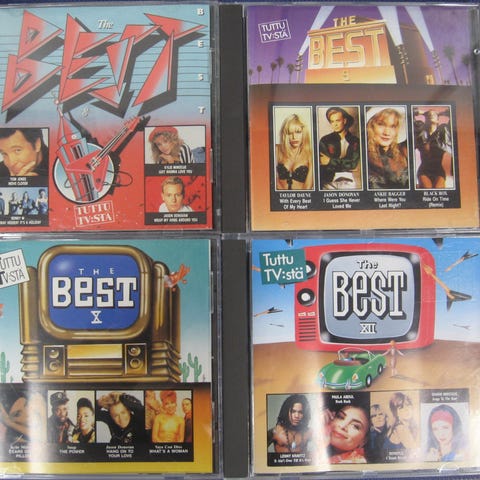 Myydään kokoelma cd-levyjä 3,00 euroa kappale. Kaikki cd:t kuunneltu ja todettu toimiviksi. Cd:ssä voi olla naarmuja & kansipapereissa jälkiä/omistuskirjoituksia, mutta cd-kotelot ovat ehjät. Postituskulut ostajalle ja noutokin sovittavissa.