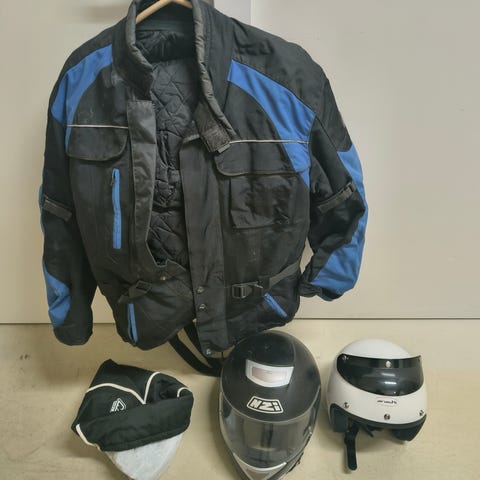 Kuvissa olevat kaikki varusteet kuuluu mukaan. 1x XL varusteet miespuoliselle, 2 kypärää, vähän muuta lisänä.