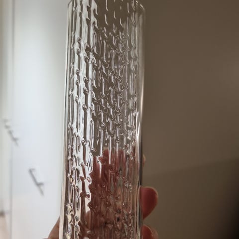 Viisi Riihimäen Lasin Flindari sarjan olutlasia korkeudeltaan 12,5 cm ja yksi erilainen korkeudeltaan 13 cm.