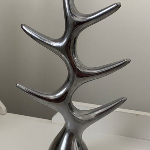 Nyt saatavilla harvinaisen kaunis kullanvärinen metallinen koruteline, joka tilattu Briteistä sisustusliikkeestä muutama vuosi sitten (maksettu verot ym. tullit). Hinta ollut lähemmäs 75 euroa kaikkineen.