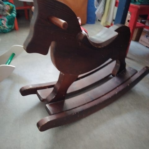 Hyvin iso ja hyvin vanhakin iso keinuhevonen jonka lev.on n.100cm. Tuunaa lapsenlapsellesi tai koristeeksi.Tai pidä näin puutarhakoristeena Helppo tuunata kun on täyspuuta.