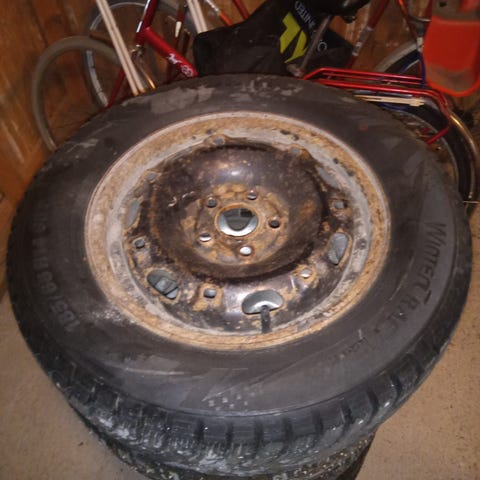 Vw polossa olleet peltivanteet,kahdessa nastarenkaat paikallaan,pintaa 6 mm ja nastat tallella