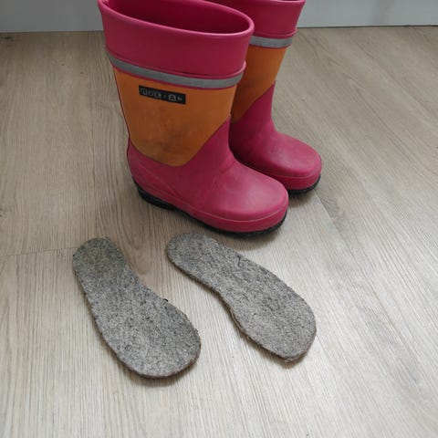 Siniset Nokian kumisaappaat, koko 24. Pohjallisista on jäljellä yksi. Hyväkuntoiset, hieman kuluneet. Toinen heijastin irsottaa hieman takaa.