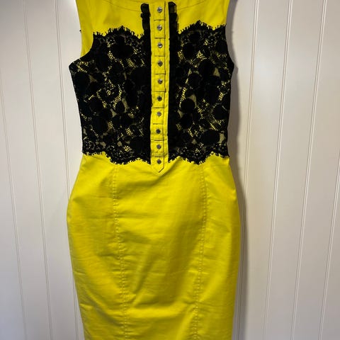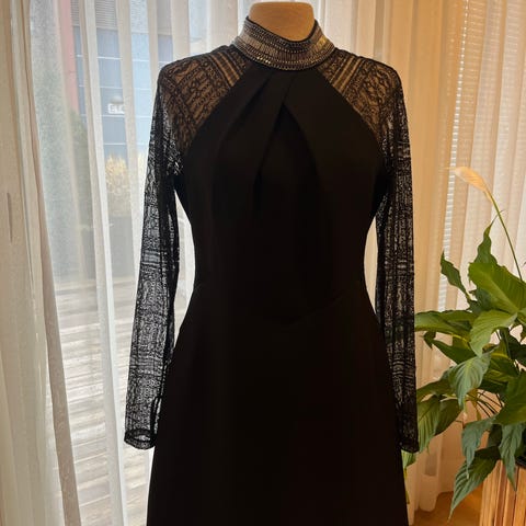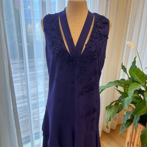 Karen Millen ilta- tai juhlapuku, Puvussa on näyttävä rusettiyksityiskohta edessä ja se on valmistettu laadukkaasta materiaalista. Suljetaan takana vetoketjellä. Sopii juhla- ja erityistilaisuuksiin.