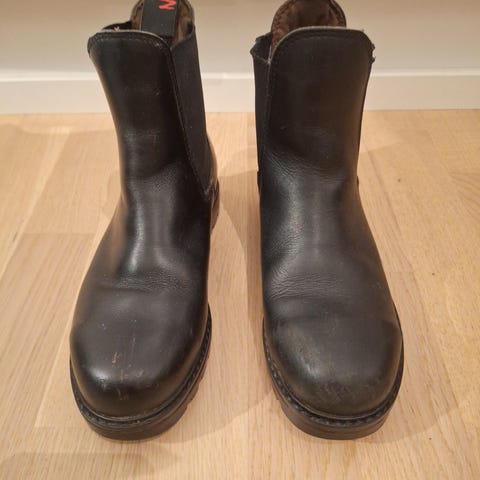 Lasten mustat nahkaiset koon 34 ratsastuskengät. Edessä vetoketju. Paljon käytetyt mutta ajavat asiansa edelleen.