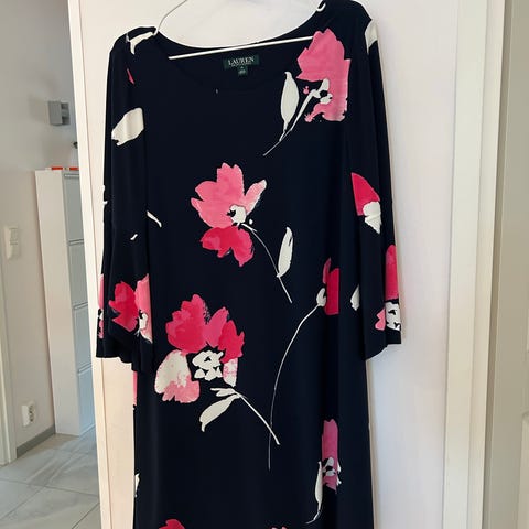 Ralph Lauren Juhla- tai cocktailmekko sinisessä värissä, koko 38. Mekko on valmistettu materiaalista, joka sisältää elastaania, mikä tarjoaa joustavuutta ja mukavuutta. Mekossa on pitkähihaiset hihat ja tyylikäs leikkaus, joka sopii juhla- ja cocktailtilaisuuksiin.