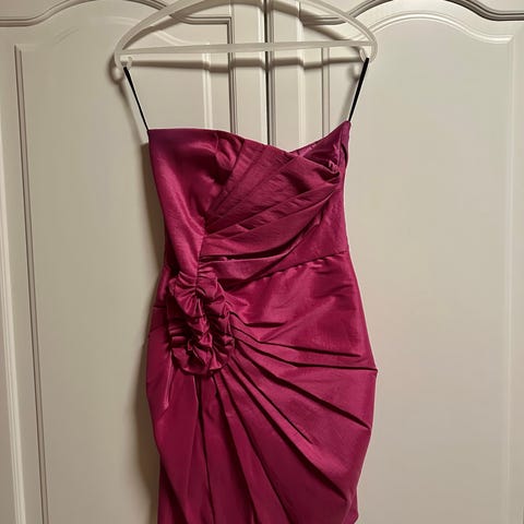 Juhlamekko, kerran käytössä ollut ylioppilaspäivänä. Kaula-aukkoa hieman pienenennetty sisäpuolelta, saa tarvittaessa avattua takaisin jos haluaa, ompeleet sisäpuolella ei siis näy päällepäin. Kuvissa tarkempaa yksityiskohtaa. Mukana myös erillinen huivi.