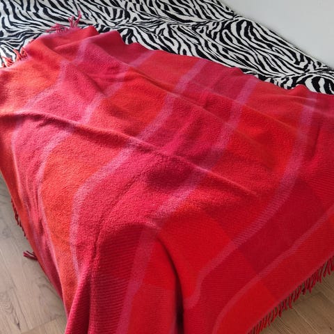 Merinovillaa ja kashmirvillaa. Peitossa ja tyynyssä on kaksi puolta; villainen puoli, ja kangaspuoli joka on samaa väriä kun reunanauhat.