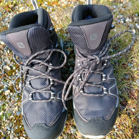 Norjasta ostetut vuorten huiputukseen/vaeltamiseen tarkoitetut kengät. Yhden reissun verran käytetyt ja pieniksi todetut. Contagrip-pohja pitää hyvin ja goretex-pinta pitää jonkin verran sadetta.