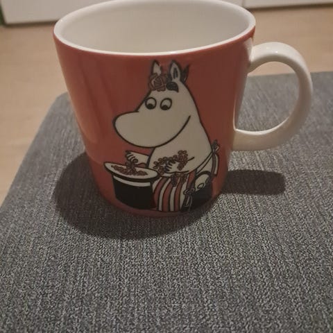 Tuotannosta poistunut muumimuki Mamma ja marjat. Siisti ja hyvässä kunnossa. Nouto Nokialta tai kulkeutuu Tampereelle