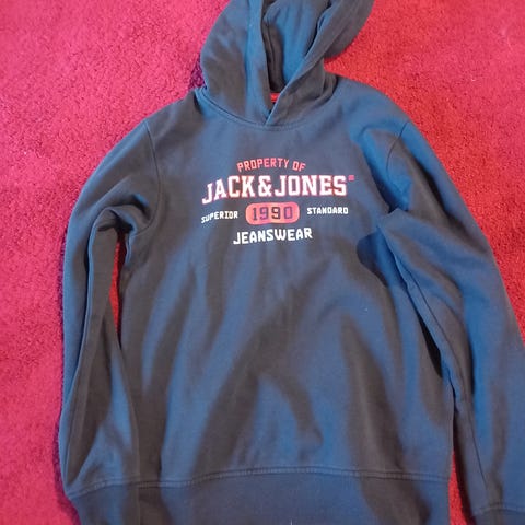 Oliivinvihreä huppari, jossa edessä vetoketju. Sivutaskut. Edessä sininen Jack&Jones painatus.
