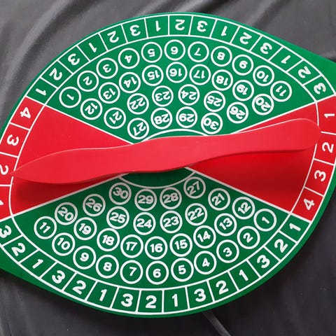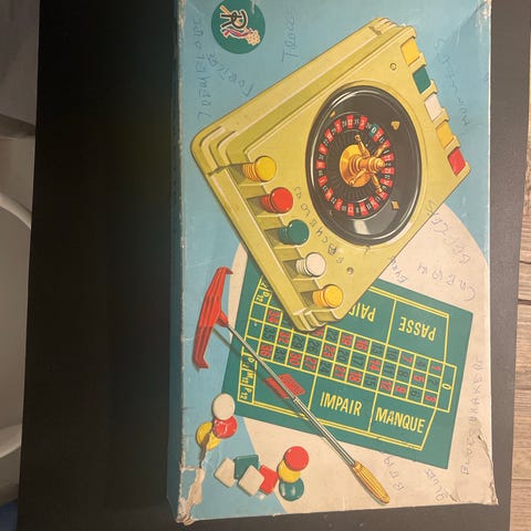 Klassinen ruletti pöytäpelin osat, musta muovinen runko ja pyörivä pelilauta, jossa numerot ja värit perinteisessä järjestyksessä. Sopii käytettäväksi pöytäpelinä kotona tai tapahtumissa. Voipaketin kokoinen. Pallo puuttuu.