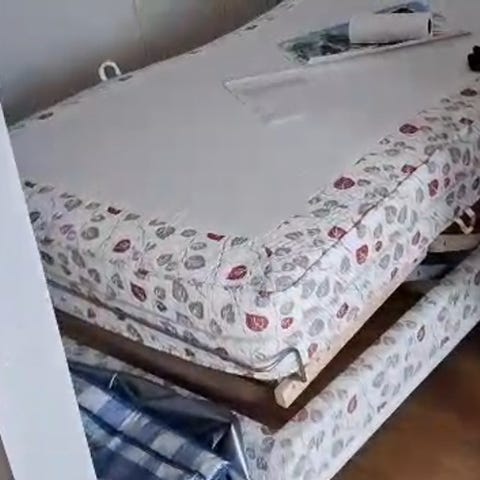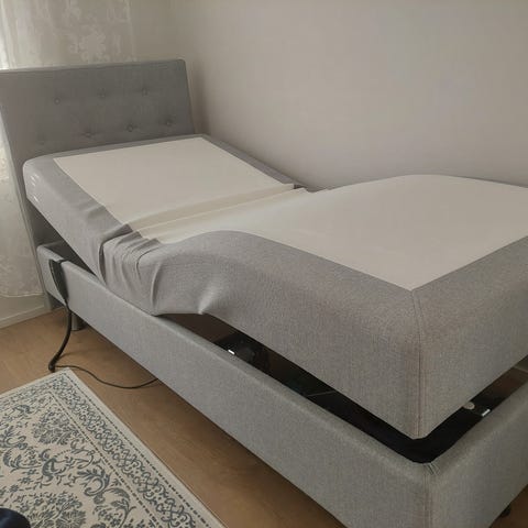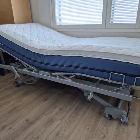 Sairaalasänky jossa puiset päädyt, moottoroitu. Päädyt nousee. Hyvä kuntoinen, ollut siistillä vanhuksella. Saa taitettua myös kahtia. Patja samaan hintaan. Jämsässä