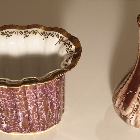 Myynnissä kaksi suloista puhallettua pikkumaljakkoa. Ostettu Aalto-yliopiston joulumyyjäisistä aikanaan, kun taideteolliset alat toimivat vielä Arabian kampuksella. Valitettavasti en muista tekijää.